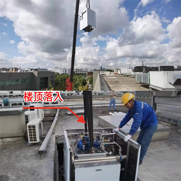 【施工環(huán)境】:因?yàn)殡娞轃o(wú)法進(jìn)入,所以只能樓頂鏤空,直接通過(guò)80噸吊車將設(shè)備從一樓吊裝至5樓頂井口落入工程.從樓頂直接吊裝重型精密設(shè)備,高空吊裝從樓頂?shù)跹b設(shè)備到落入公司.