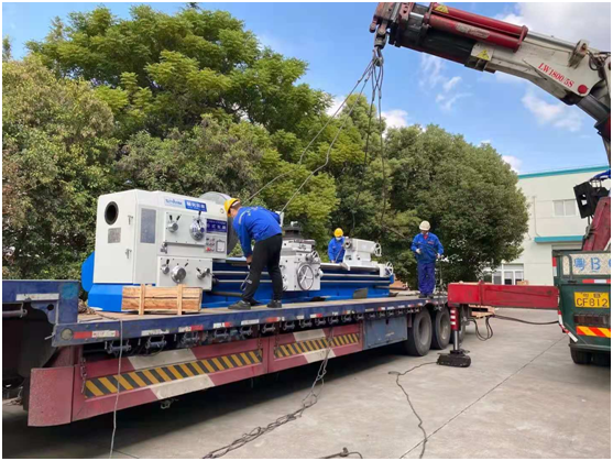 2.就以上圖來說,一臺(tái)“臥式車床”設(shè)備需要我司吊裝卸車就位工程。首先使用鋼絲繩與設(shè)備的四個(gè)吊裝角銜接好之后慢慢起吊。吊裝過程中需要隨時(shí)注意設(shè)備重心的偏向,所以這就需要專業(yè)的吊裝人員來操作這一項(xiàng)作業(yè)。