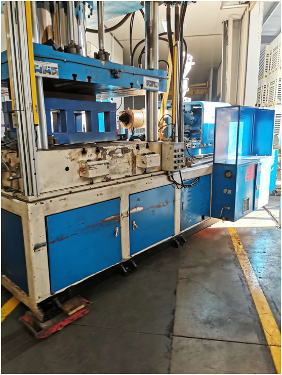 3.首先第一步就是清理周圍的塑料顆粒,大型設(shè)備搬運(yùn)一般不會(huì)輕易移位,所以時(shí)間久了就會(huì)累計(jì)許多雜物,清理完畢后使用千斤頂將注塑機(jī)的幾個(gè)墊腳拆除后使用叉車的叉臂起高,然后墊上大板輪。在這里需要注意的是在進(jìn)行移位時(shí),地面一定要勘查清楚,如果有坑坑洼洼的地面一定要注意,周圍兩邊一定要有人員勘查實(shí)時(shí)情況。