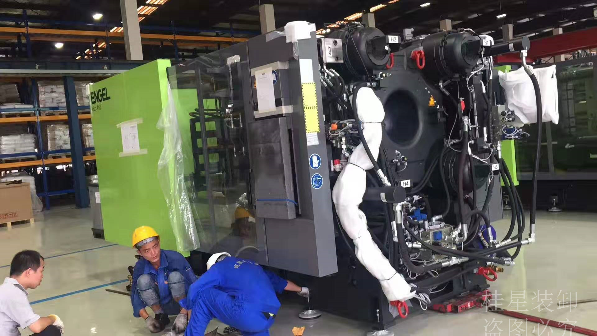5.注塑機(jī)安裝完成后時(shí)需要注意: 1.注塑機(jī)所有的墊腳是否到位。 2.把底盤的坦克輪取出。 3.最后將千斤頂放下,按廠家的要求,擺放至指定地點(diǎn)就位。 6.拆卸注塑機(jī)零部件應(yīng)盡可能放在一起,不要亂丟亂放,注意放穩(wěn)放好,工作地點(diǎn)要經(jīng)常保持清潔,通道不準(zhǔn)放置零部件或者工具。 7.所以選擇搬遷的公司時(shí),首選桂星裝卸搬運(yùn)有限公司,桂星搬運(yùn)是一家有運(yùn)輸、安裝資質(zhì)的專業(yè)公司!