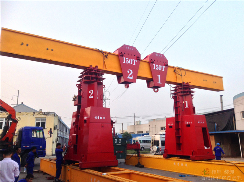3、吊鉤4個,可以在橫梁上移動,單個承重150噸。