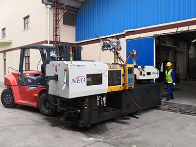 上海桂星裝卸搬運有限公司采用2臺10T叉車牽引大型搬運小坦克以完成此次300大型沖床設(shè)備的設(shè)備搬運工作。