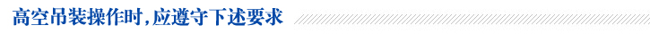 高空吊裝操作時(shí),應(yīng)遵守下述要求:a.不得利用極限位置限住器停車;b.不得在有載荷的情況下調(diào)整起升、變幅機(jī)構(gòu)的制動(dòng)器;c.吊運(yùn)時(shí),不得從人的上空通過(guò),吊臂下不得有人;d.設(shè)備搬運(yùn)機(jī)工作時(shí),不得進(jìn)行檢查和維修。